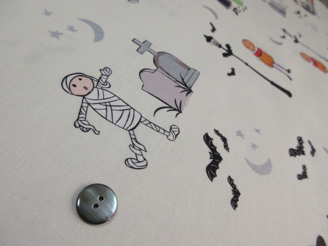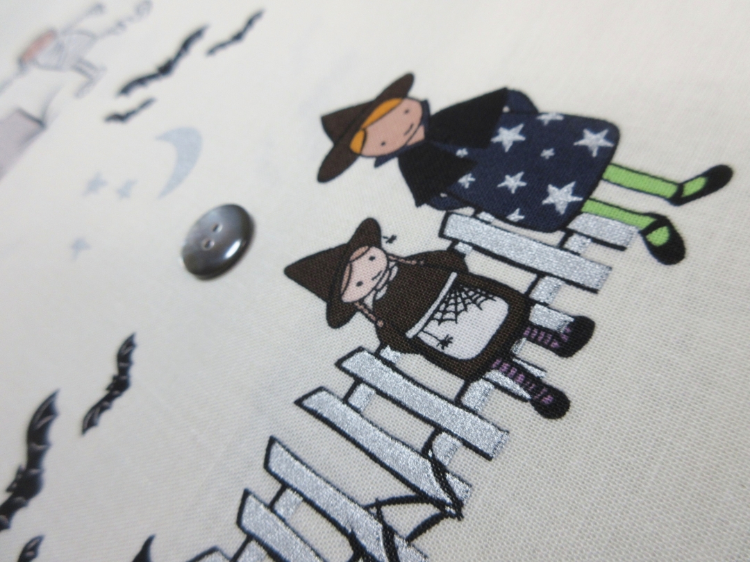 ハロウィンはご存じの通り、毎年10月31日に行われるヨーロッパ発祥の祭りです。 私たち日本人には馴染みのなかったお祭りでしたがクリスマスと同様にすっかり定着しましたね。 本来は秋の収穫を祝って、悪霊を追い出す宗教的な意味合いのある行事だったみたいですね。 悪霊や魔女たちが家に入らないよう、かがり火をたいた・・という私個人的にはわくわくするような言い伝えがあります。 現在では宗教的な意味合いは無くなり、カボチャをくりぬいて作られる「ジャックオーランタン」、子どもたちが仮装して近くの家々を訪れ「Trick or treat」と唱えてお菓子をもらったりと楽しいイベントとなっていますね。 ハロウィンの時期にはもちろんのこと、普段使いで羽織ってもお洒落なアロハシャツに仕上がると思いませんか? 物語性がありますので眺めるだけでも楽しいデザインとなっています。